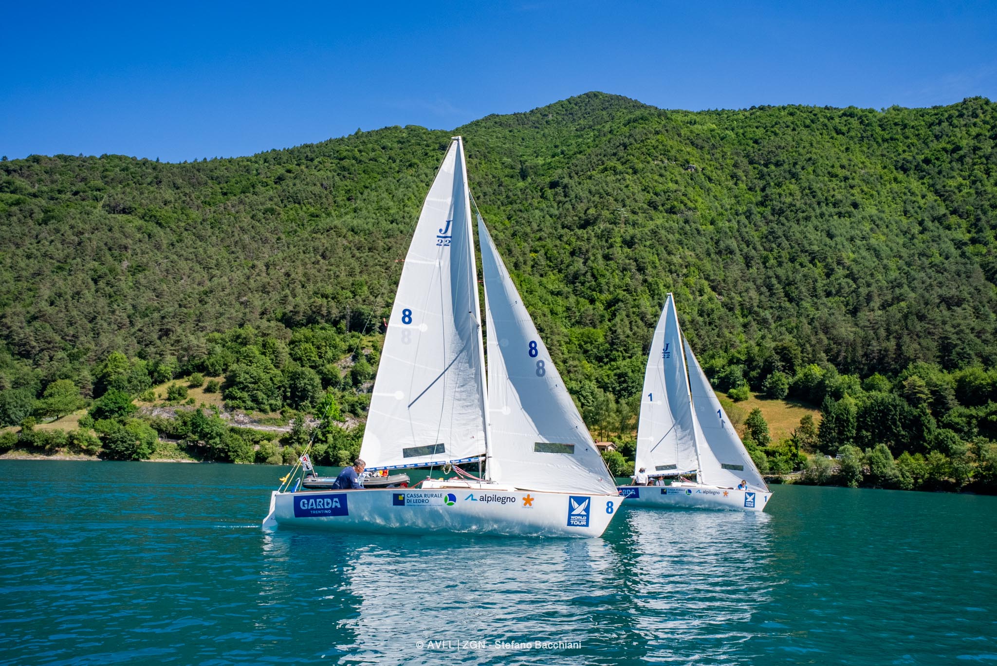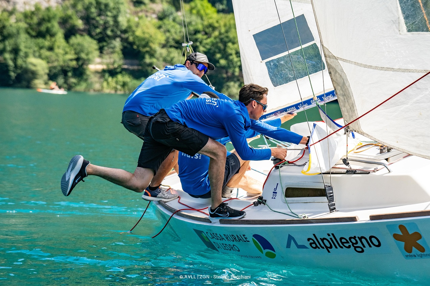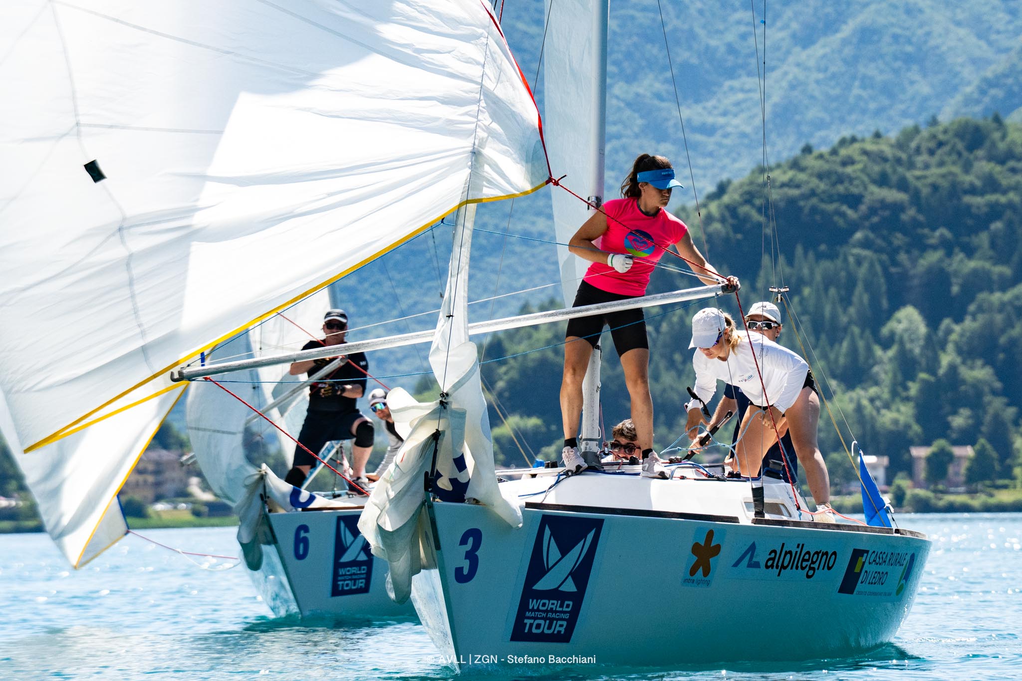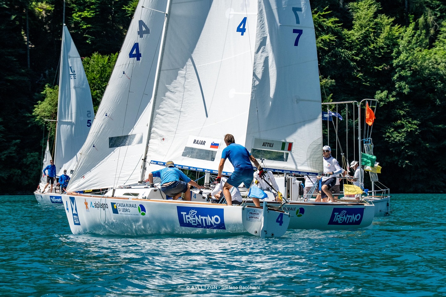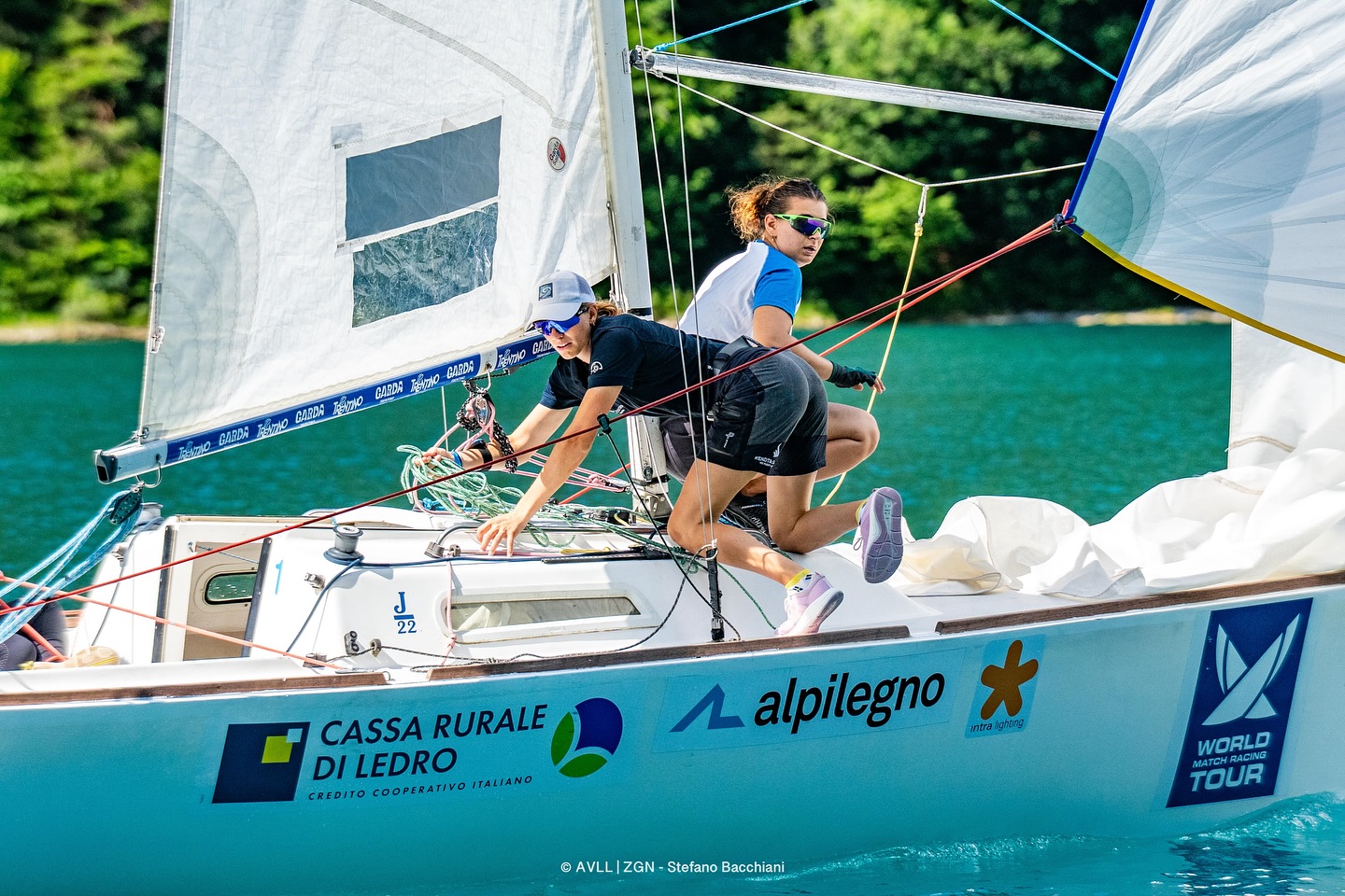 Lake Ledro – Light wind conditions did not prevent the completion of the scheduled races on the first day of the OM International Ledro Match Race, the only Grade 2 event in Italy that counts towards the World Match Racing Tour, organized by Associazione Vela Lago di Ledro.
